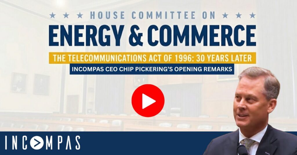 INCOMPAS CEO Chip Pickering testified at the U.S. House of Representatives Energy and Commerce Subcommittee on Communications and Technology on “The Telecommunications Act of 1996: 30 Years Later“. In his testimony, Pickering drew on his experience working on the Act as a staffer, overseeing its implementation as a Member of Congress, and now leading INCOMPAS, to outline the principles that must guide America’s next chapter in AI and digital infrastructure.